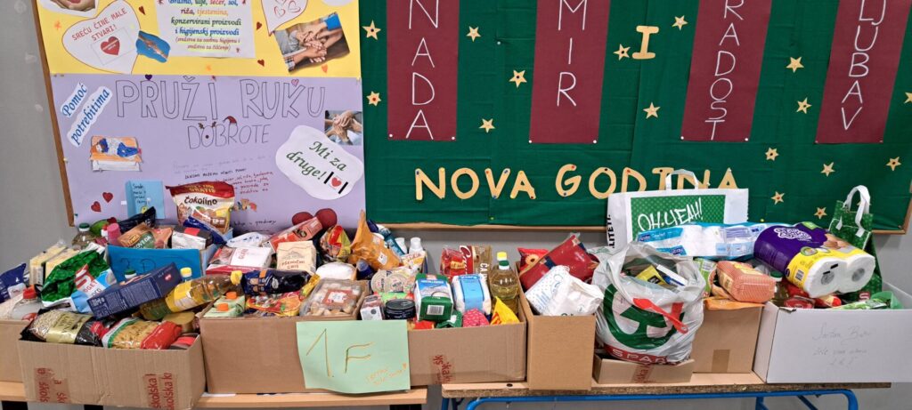 Božićna akcija prikupljanja prehrambenih namirnica i higijenskih potrepština koju su u školi organizirali članovi školske Zajednice aktivnih građana za Socijalni dućan Crvenog križa u Heinzelovoj ulici 64, postigla je odličan odaziv učenika, nastavnika i roditelja. Ovom akcijom smo željeli pomoći našim sugrađanima i obiteljima kojima su namirnice najpotrebnije i još jednom smo pokazali da zajedno možemo učiniti puno, kao i da dobrota i solidarnost žive i u školskim klupama. Zahvaljujemo svima; učenicima, roditeljima i nastavnicima na donacijama i sudjelovanju u ovoj humanitarnoj akciji.
