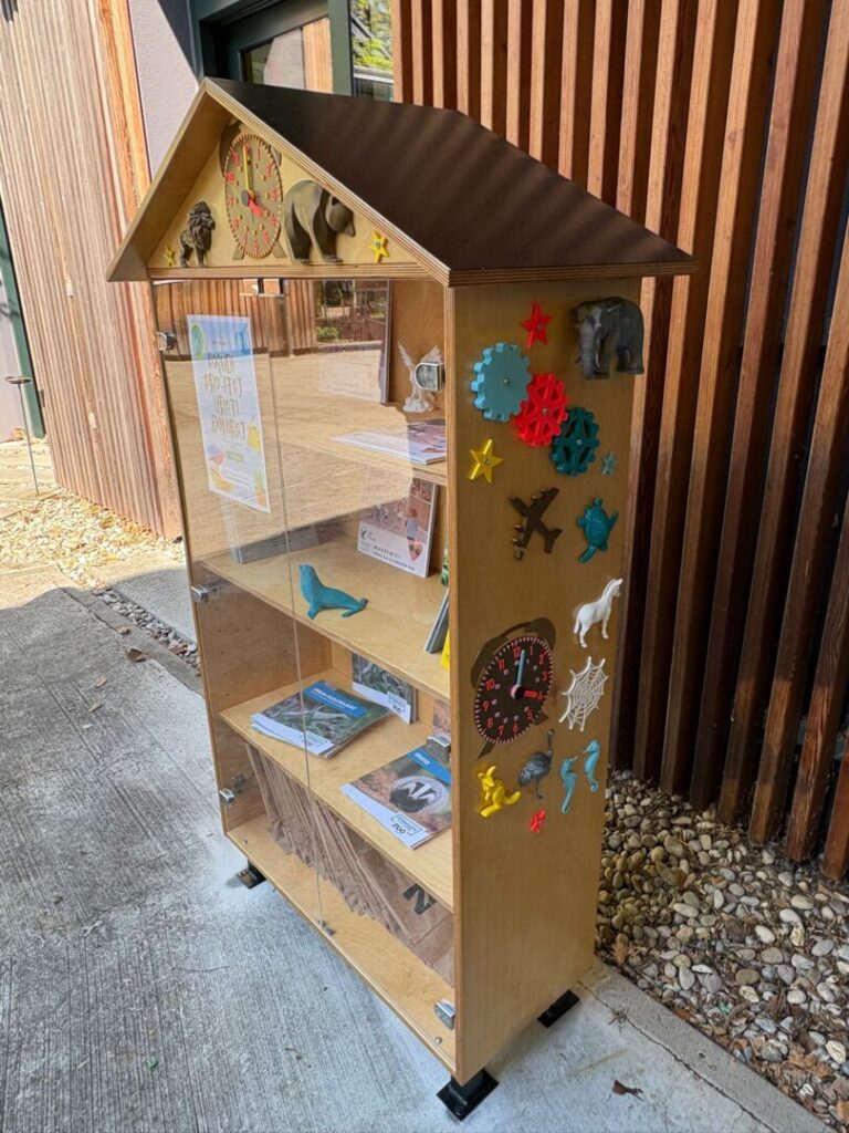 Kućicu su izradili učenici Industrijske strojarske škole u sklopu rada Erasmus+ tima povezujući znanje, kreativnost i suvremenu tehnologiju. Konstrukcija kućice izrađena je od kompozitnih ploča na CNC stroju dok su na bočnim stranicama postavljeni didaktički elementi i razne životinje izrađeni 3D printanjem. Tako kućica, osim svoje osnovne namjene, postaje i mjesto igre, istraživanja i učenja za najmlađe posjetitelje. Više pročitajte na poveznici https://zoo.hr/slikovnica-pustolovine-fride-i-lavice-ozivjela-price-o-lavovima-iz-povijesti-zooloskog-vrta-grada-zagreba/