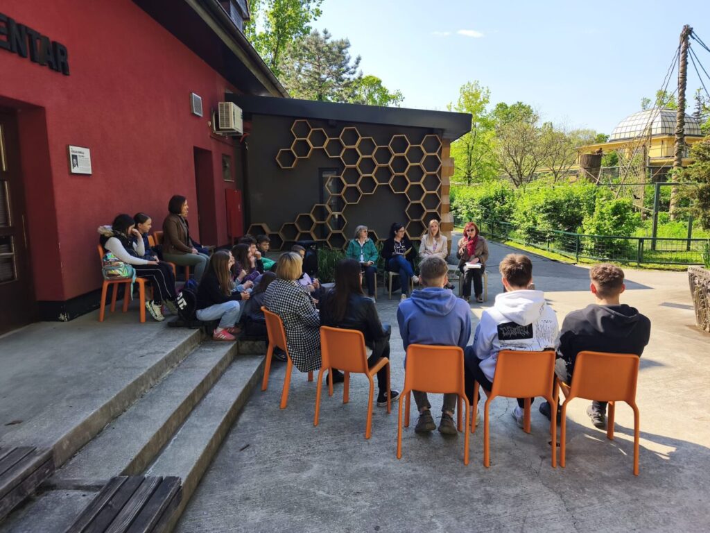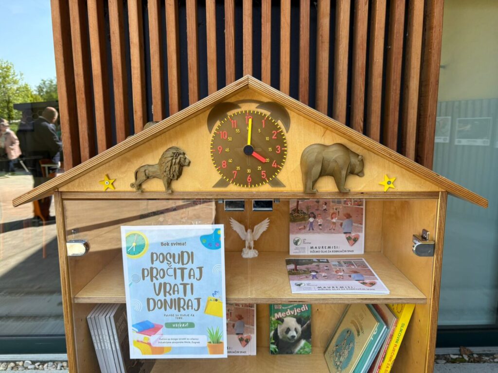 Povodom Dana hrvatske knjige, naši učenici Erasmusovci Vito Pervan, Valentin Tkalec i Filip Novoselec sudjelovali su u posebnom događanju u Zoološkom vrtu Grada Zagreba – predstavljanju slikovnice “Pustolovine Fride i lavice” te postavljanju kućice za knjige na Edukacijskom trgu. Kućica za knjige još je jedna mala slobodna knjižnica koja funkcionira pod motom “Posudi, pročitaj, vrati i doniraj knjigu.”