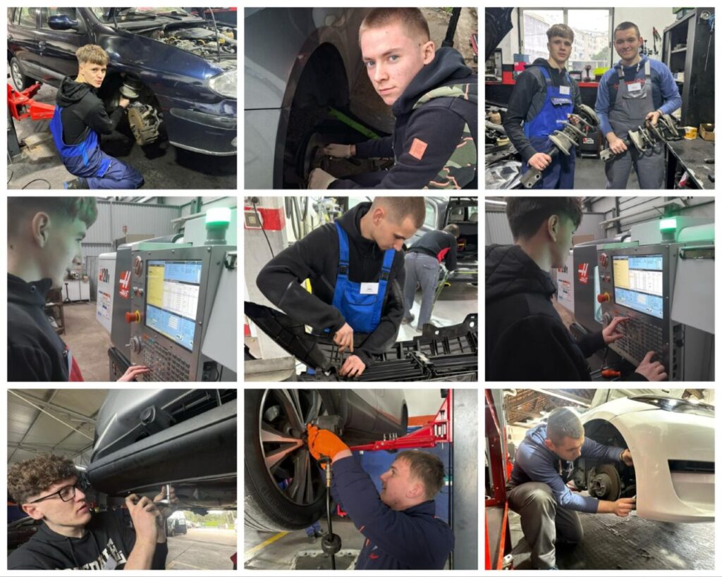 U praktičnom radu učenici su sudjelovali u rastavljanju vanjskih i unutarnjih dijelova karoserije pri čemu su prakticirali pravilno označavanje, pohranu i zaštitu demontiranih dijelova. Pod mentorstvom stručnih djelatnika radionica, učenici su pripremali oštećene površine za popravak koristeći odgovarajući alat i pridržavajući se pravila za rad na siguran način.